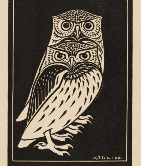 Twee uilen, 1921, Houtsnede, 26,3 x 20 cm, Drents Museum, schenking Stichting Schone Kunsten rond 1900
