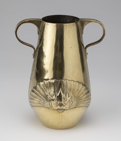 Vaas met rivierdonderpadden, 1904-1909, Messing, 19,5 cm x 16 cm, Drents Museum, aangekocht met steun van de VriendenLoterij
